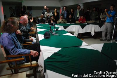 La agrupación española BARÓN ROJO arribó a Bogotá el pasado domingo hacia las 8:00 pm y la noche del martes 2 de junio tuvo lugar la rueda de prensa en medio de un cálido ambiente en el que imperó el respeto y la admiración de los medios, las bandas nacionales y los invitados. EL FORTÍN DEL CABALLERO NEGRO estuvo allí con su equipo de trabajo. A continuación los detalles de esta reunión periodística.